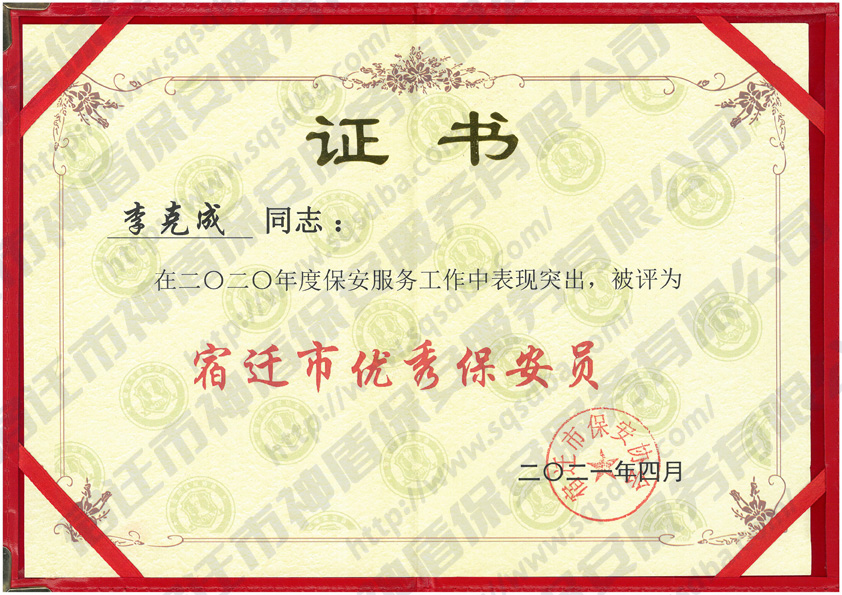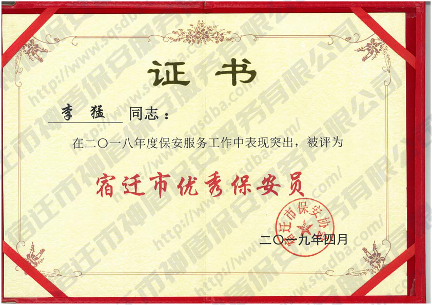 保安員見(jiàn)義勇為獲獎(jiǎng)證書(shū)