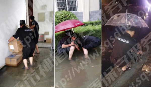 7月16日,宿遷市區(qū)普降暴雨,多處低洼地段積水嚴重。宿遷市神盾保安服務(wù)有限公司密切關(guān)注天氣變化、及時下發(fā)預(yù)警信息、提前做好準備工作,全力配合客戶單位做好下水道疏通、積水排除和物資轉(zhuǎn)移等工作。