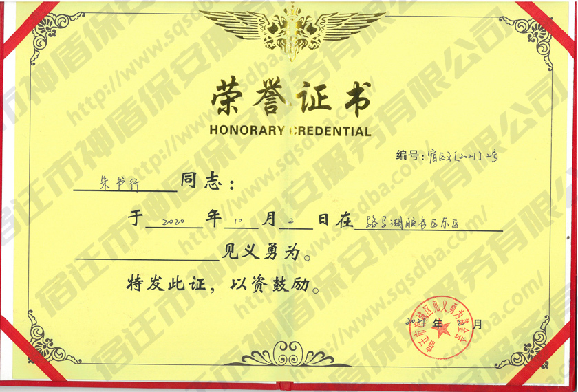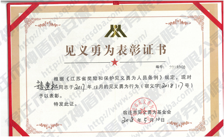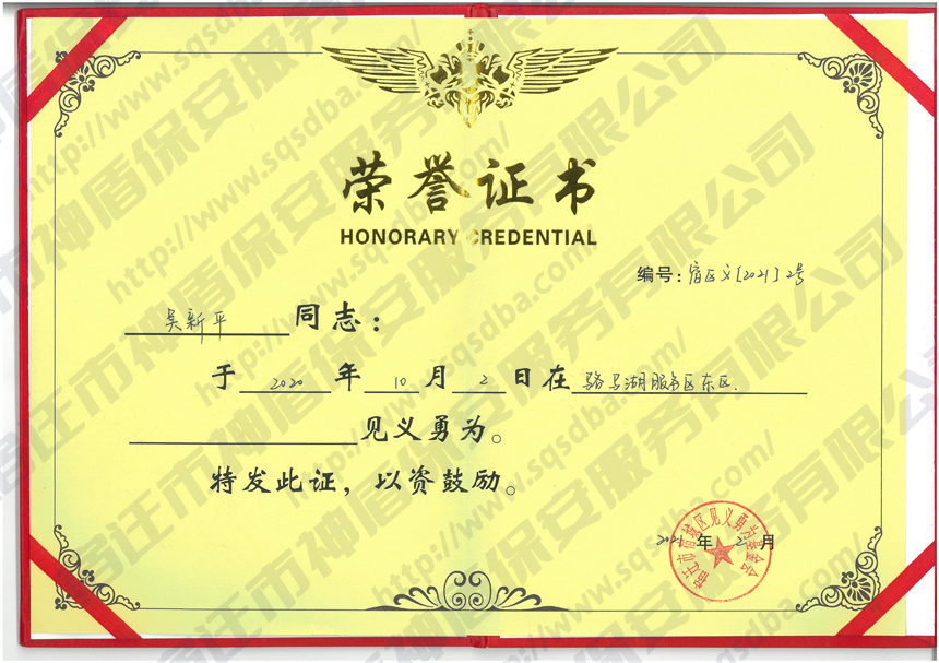 保安員見(jiàn)義勇為獲獎(jiǎng)證書(shū)